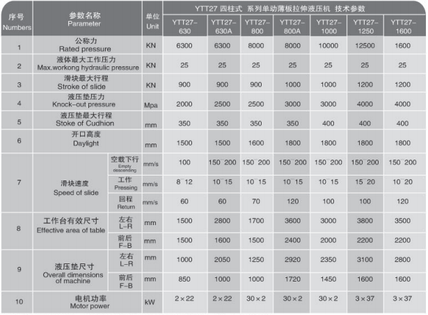產(chǎn)品介紹:性能特點(diǎn):計(jì)算機(jī)優(yōu)化結(jié)構(gòu)設(shè)計(jì),為四柱式結(jié)構(gòu):四柱式結(jié)構(gòu)簡(jiǎn)單、經(jīng)濟(jì)、實(shí)用;液壓控制系統(tǒng)采用插裝閥集成系統(tǒng),動(dòng)作可靠、使用壽命長(zhǎng)、液壓沖擊小、減少了連接管路與泄漏點(diǎn),液壓集成系統(tǒng)采用獨(dú)立控制單元;采用按鈕集中控制,具有調(diào)整、半自動(dòng)(半自動(dòng)可分定程單次和定