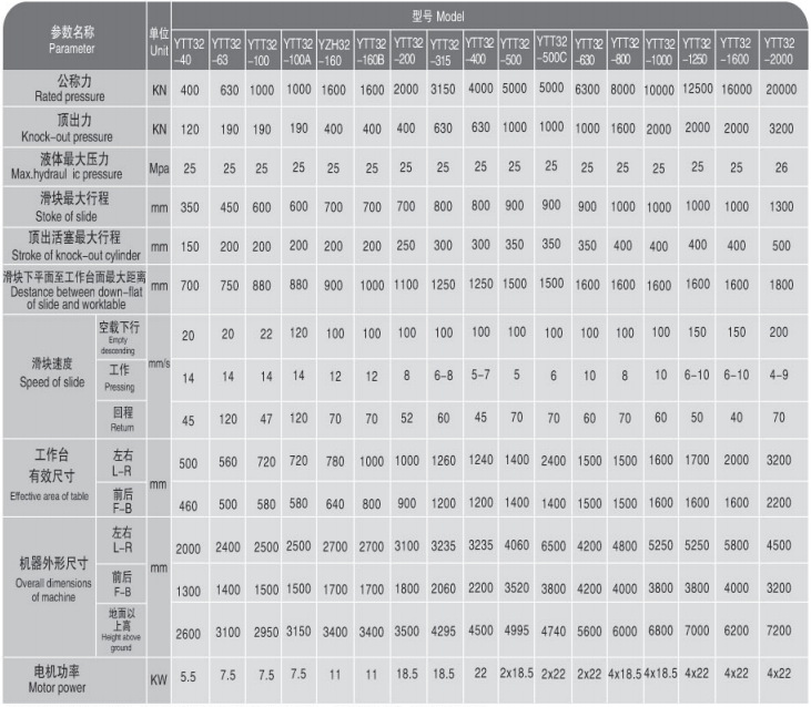 產(chǎn)品介紹:性能特點:計算機優(yōu)化結構設計,三梁四柱式結構,簡單、經(jīng)濟、實用;液壓控制采用插裝閥集成系統(tǒng),動作可靠,使用壽命長,液壓沖擊小,減少了連結管路與泄漏點;獨立的電氣控制系統(tǒng),工作可靠,動作直觀,維修方便;采用按鈕集中控制,具有調(diào)整、半自動兩種操作方式;通
