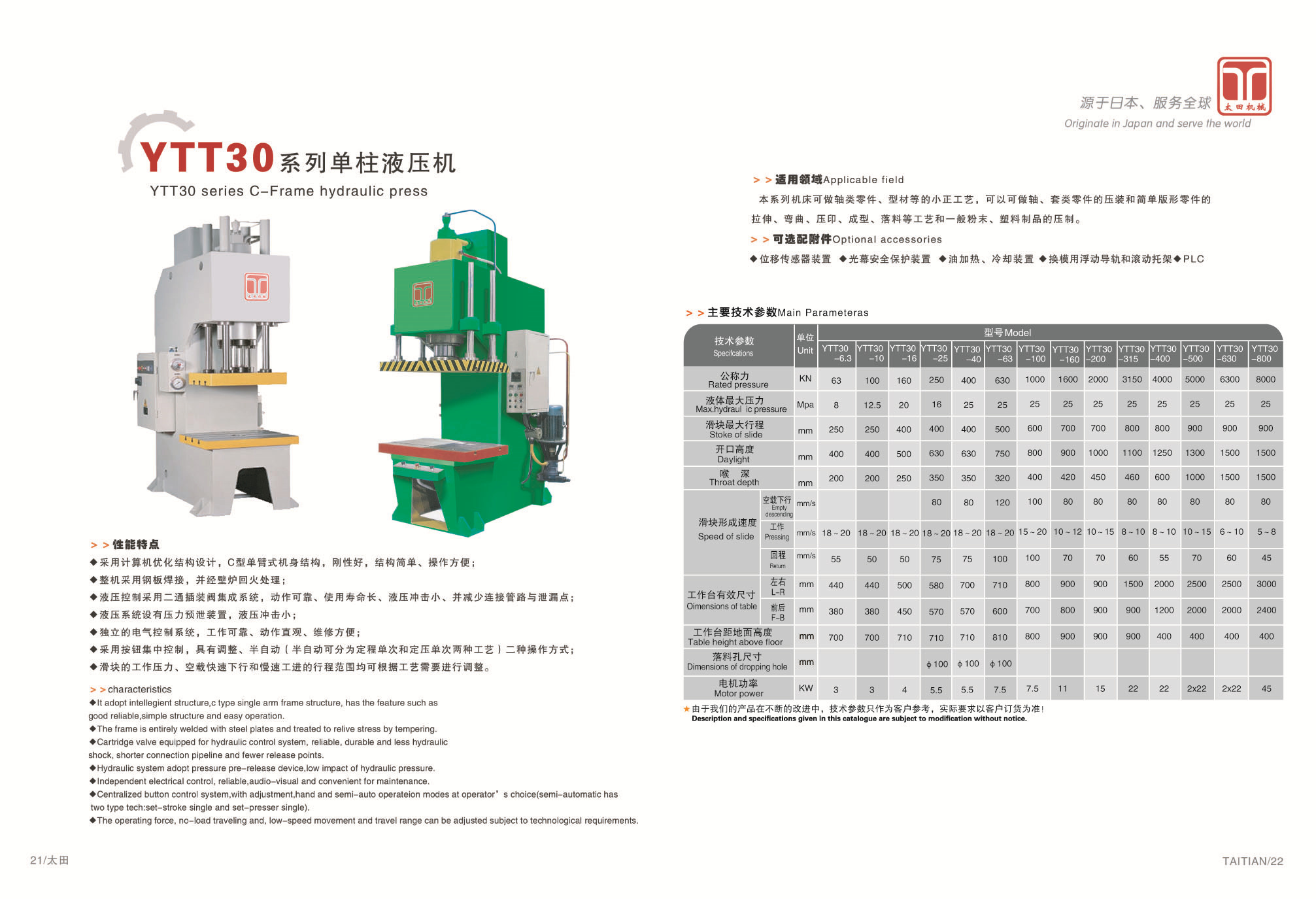 產(chǎn)品介紹:性能特點(diǎn):采用計(jì)算機(jī)優(yōu)化結(jié)構(gòu)設(shè)計(jì),C型單臂式機(jī)身結(jié)構(gòu),剛性好,結(jié)構(gòu)簡單、操作方便;整機(jī)采用鋼板焊接,并經(jīng)壁爐回火處理;液壓控制采用二通插裝閥集成系統(tǒng),動(dòng)作可靠、使用壽命長、液壓沖擊小、并減少連接管路與泄漏點(diǎn);液壓系統(tǒng)設(shè)有壓力預(yù)泄裝置,液壓沖擊??;獨(dú)立